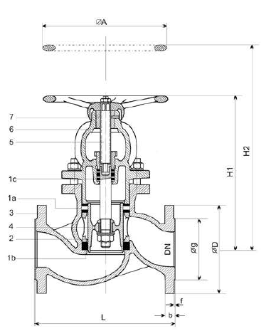 | DN | CUERPO | CONEXIÓN | Peso Aprox. (Kg.) | pulgadas | mm. | L | H1 | A | H2 | D | b | g | f | L |